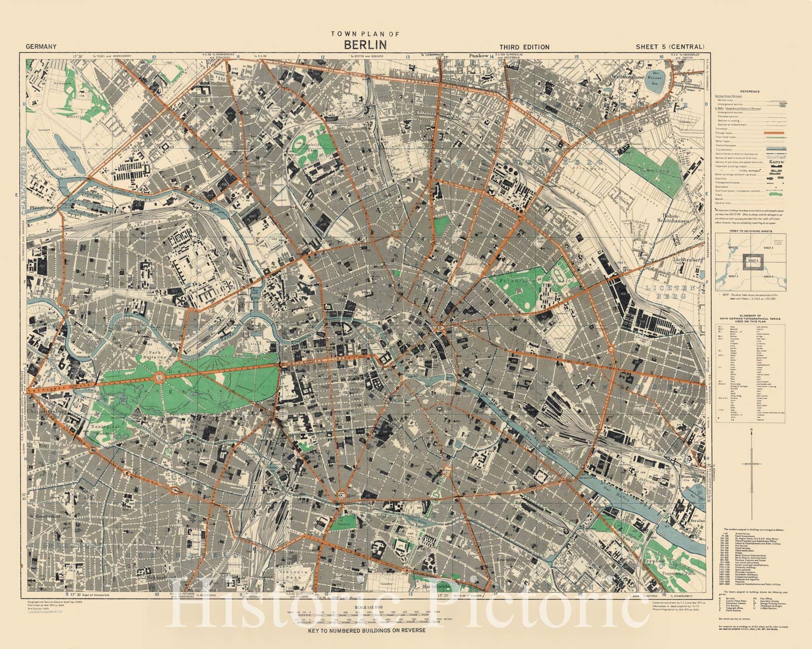 Map : Berlin, Germany 1945, Town plan of Berlin , Antique Vintage